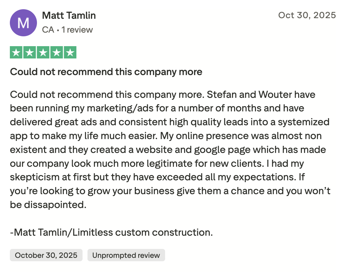 DISCLAIMER: All testimonials are from real clients but do not represent typical results. Every business is different success depends on many factors including skill, effort, market, and follow-up. The examples shown are from clients who actively implemented our systems and should not be considered average. Contractor Launch makes no guarantees of specific financial results or job outcomes.